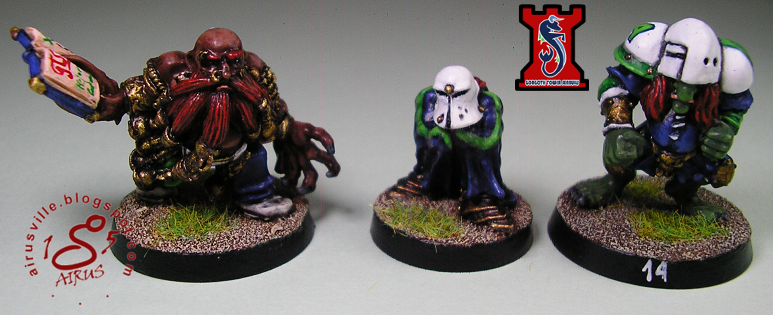 Las conversiones ya fueron comentadas la entrada previa de este equipo. En cuanto a la pintura tampoco hay mucho historia, quería colores oscuros para las pieles y azules y claros para el lima y el blanco, y que este fuera lo más puro posible. Hay algunos detalles que mejoraría, como el azul; no me ha gustado el resultado final con el trabajo que he llevado, pero hay mucho por pintar, y así me valen (cada vez más vago...:-O ).
